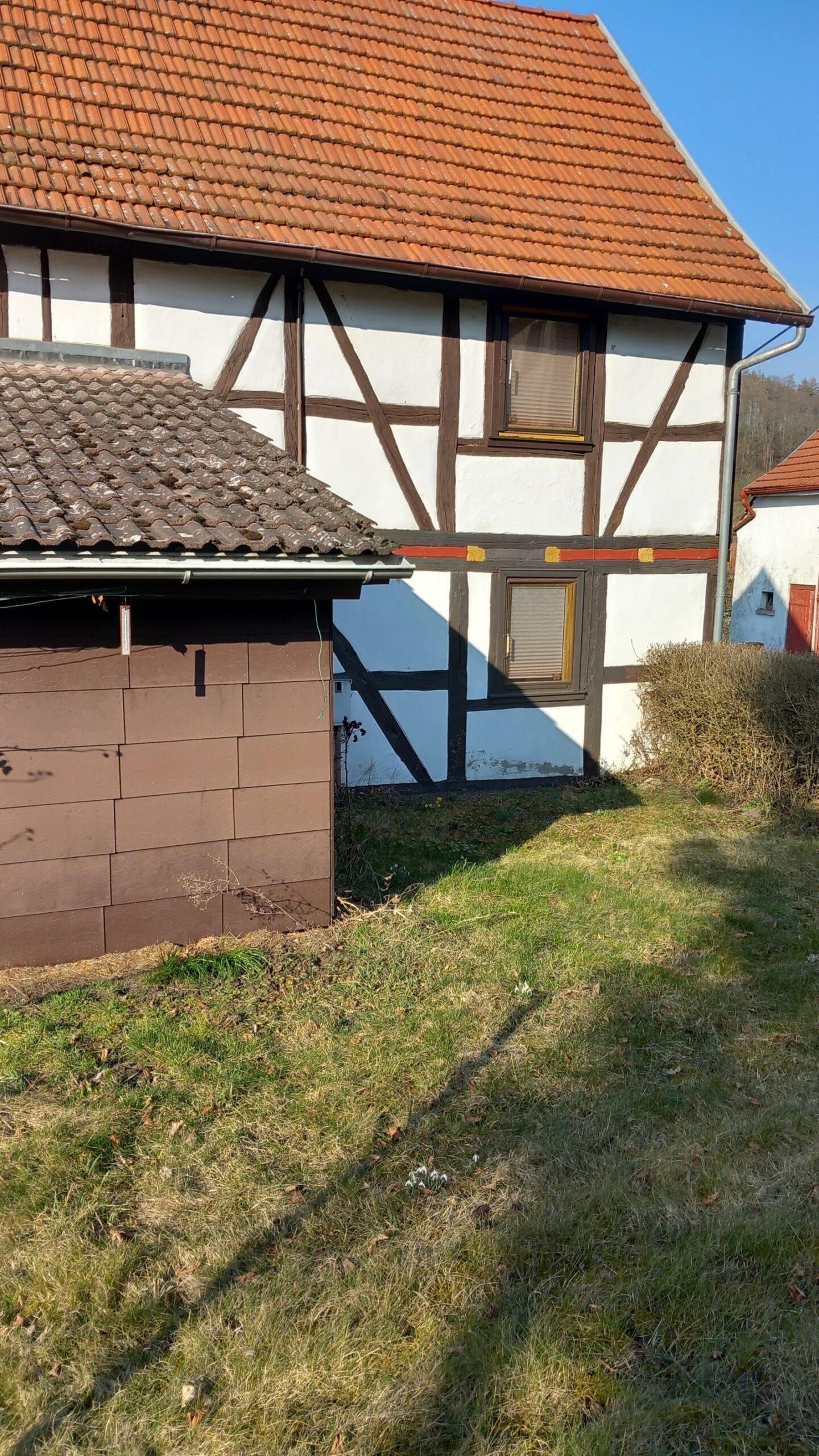 Das großzügige 900 m² große Grundstück umgibt das Fachwerk-Haus und eröffnet vielfältige Möglichkeiten für Gartenliebhaber oder als Rückzugsort im Grünen.