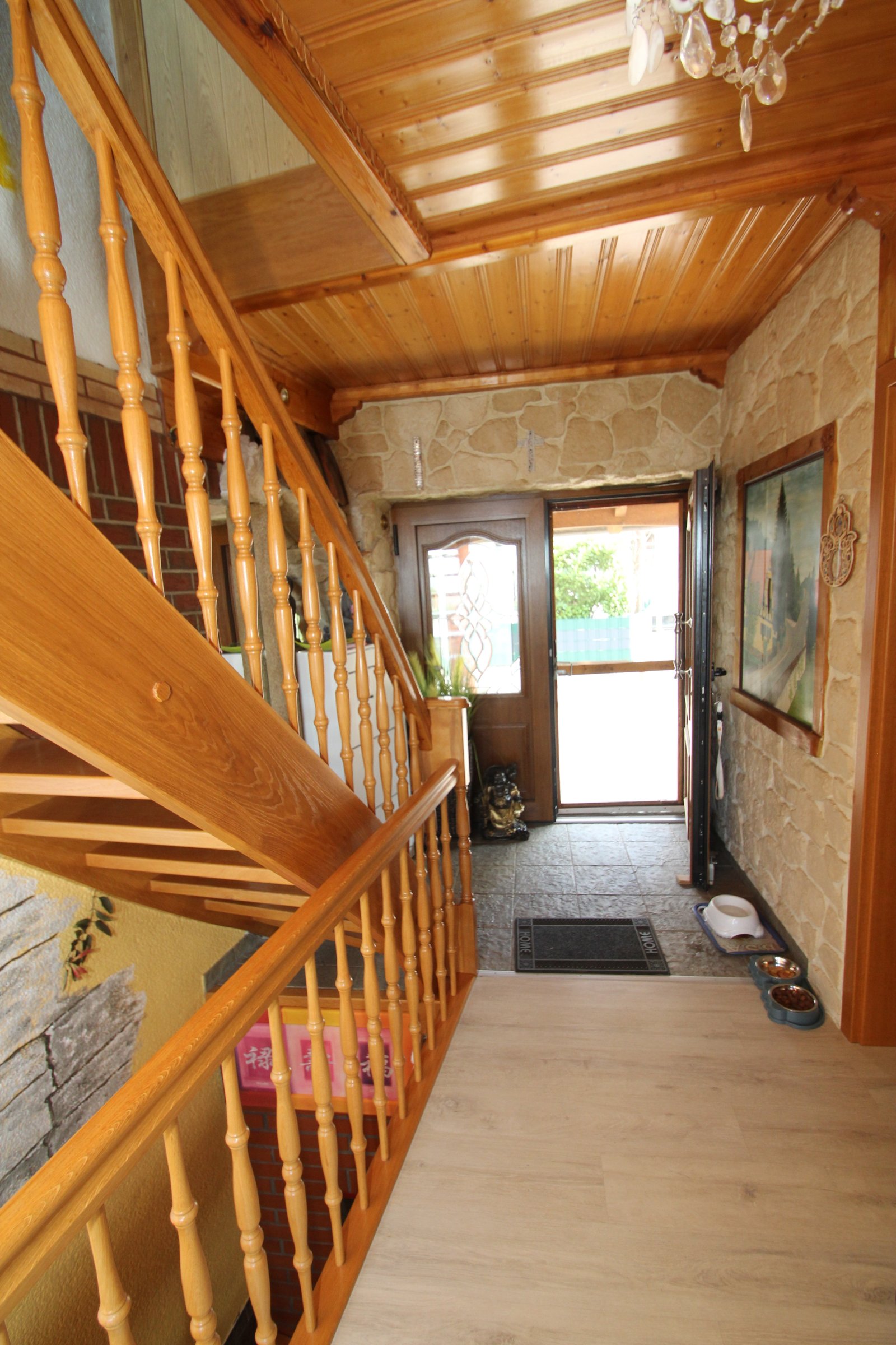 Beim Betreten des Hauses werden Sie sofort die Vielfalt der Bodenbeläge bemerken. Hochwertige Fliesen in den Nassbereichen verleihen eine elegante Optik und sind zudem pflegeleicht und langlebig. Die warmen Laminatböden in den Wohn- und Schlafbereichen bieten nicht nur eine ästhetisch ansprechende Oberfläche, sondern sind auch besonders widerstandsfähig gegen Abnutzung. Der weiche Teppichboden in bestimmten Räumen sorgt für zusätzlichen Komfort und Gemütlichkeit – perfekt für ein behagliches Zuhause.